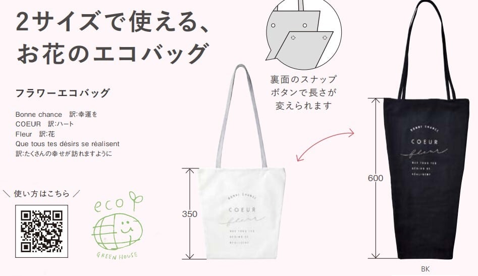 お店の方から、「お花専用のエコバッグが欲しい」とのリクエストをいただき、実現しました。