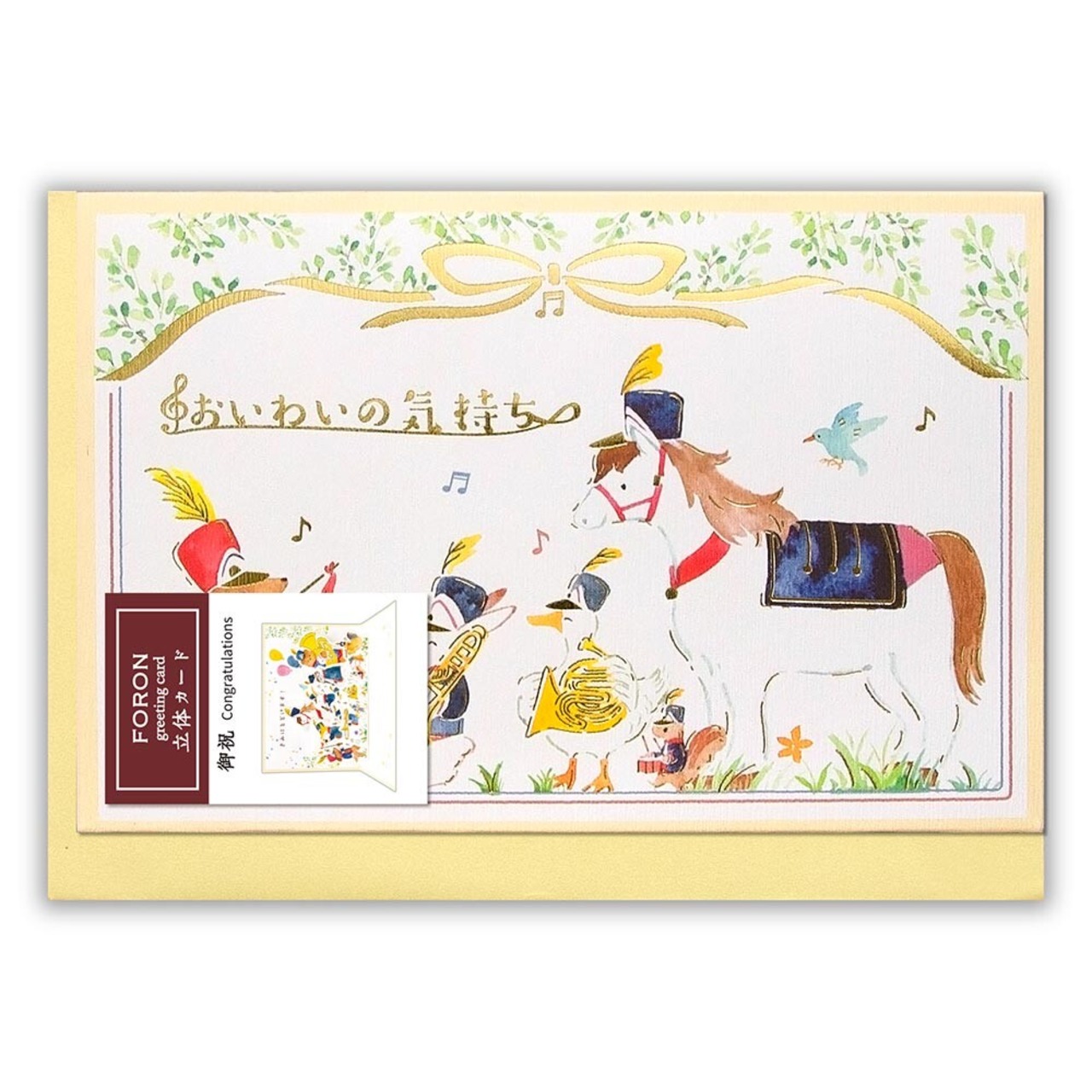 森の動物達がマーチングバンドで華やかにお祝いしてくれます。